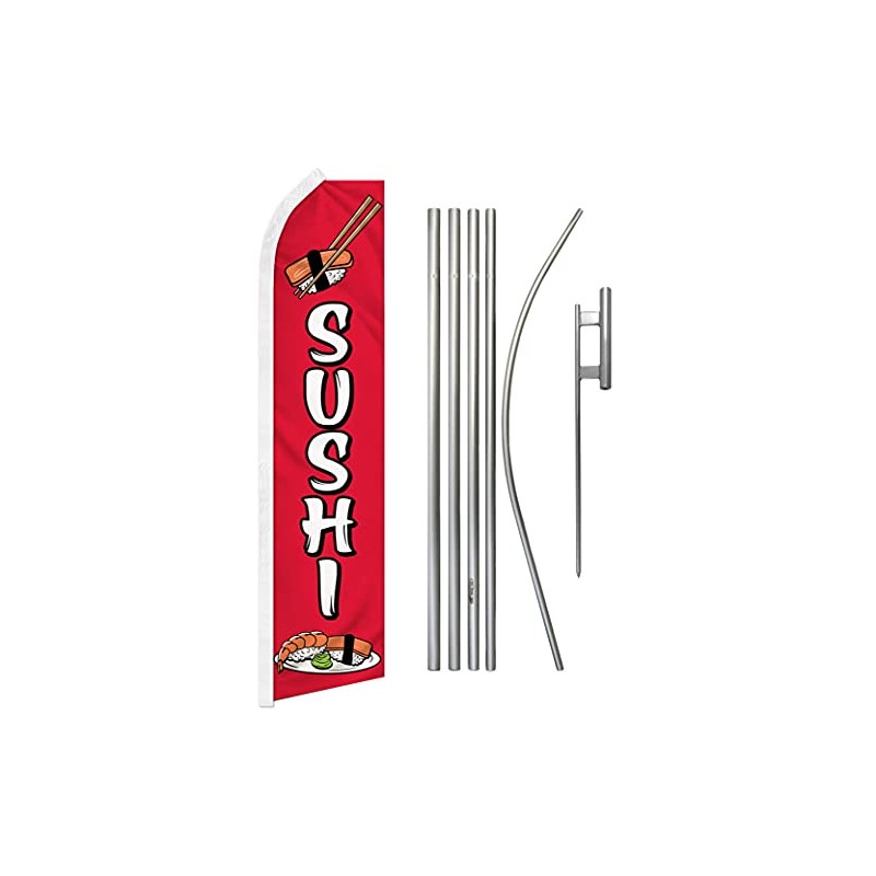 Sushi Red Swooper Advertising Flag & Pole Kit - Perfect for Store Fronts, Cafes, Retailers, Shops, Food Trucks, Events, Fairs, Restaurants