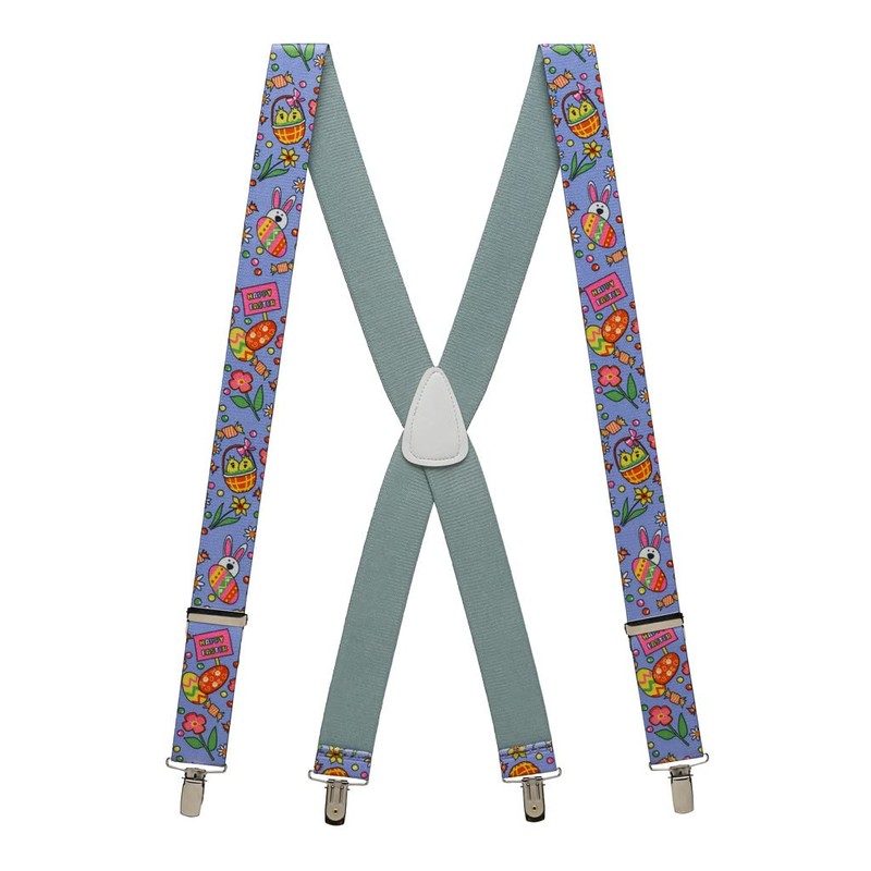 Suspender Store Novelty Easter Design Suspenders - 1.5-Inch Wide Elastic - X-Back - Clip - 54" for 6'1" to 6'5" tall
