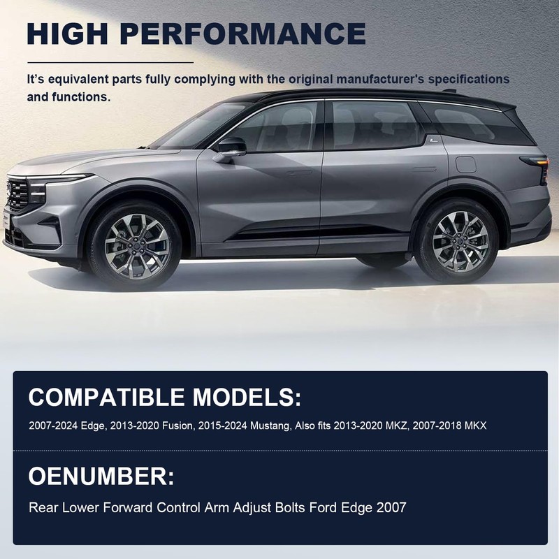 - Precision Production:Adopt with Quality materials, hard resistant, not easy break or deform, prolong the use of time. 2 sets of rear control arm cam bolts and nuts kits include all necessary componets for left and right side. For 2007-2024 Edge, you need order 4 sets for both sides. Over time, the original bolts and components can wear out or become damaged. The kit provides a complete set of replacement parts to ensure that the alignment system functions correctly.