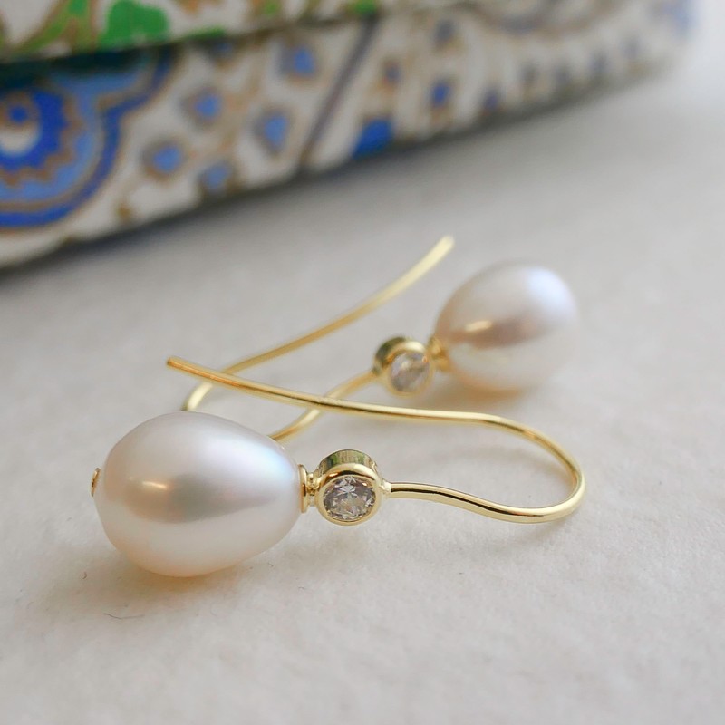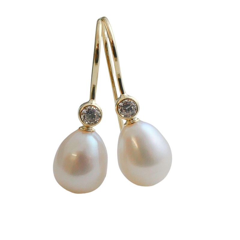 Süßwasserperlen und Zirkonia Ohrhänger aus Sterlingsilber - Handgefertigte Ohrringe für Frauen Damen (Vergoldet)