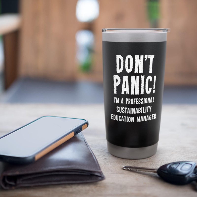- A funny and unique gift idea for eco-advocates - "Don't Panic! I'm A Professional Sustainability Education Manager."