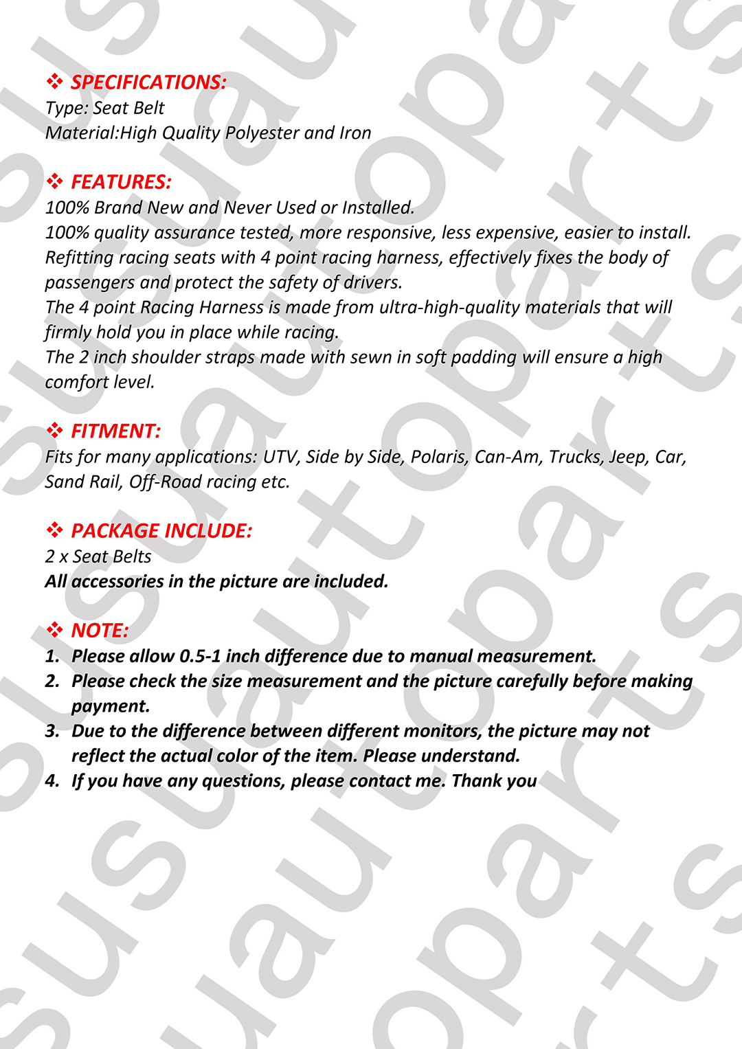 - Features: 4-Point Harness, Adjustable, Belt-in-Seat (BIS), Easy Installation, Quick Release, Racing