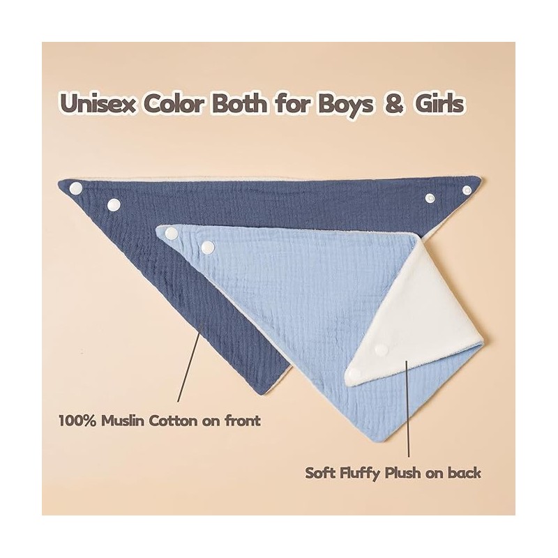 - Soft & Superior Absorbency: Our Susurration Muslin Baby Drool Bibs are crafted from 100% cotton muslin on the front, they are backed with water-resistant soft plush to ensure maximum absorption with a skin-friendly, gentle touch for your baby's skin. The dual-layered design ensures both you and your baby remain free from wet clothes all day long.