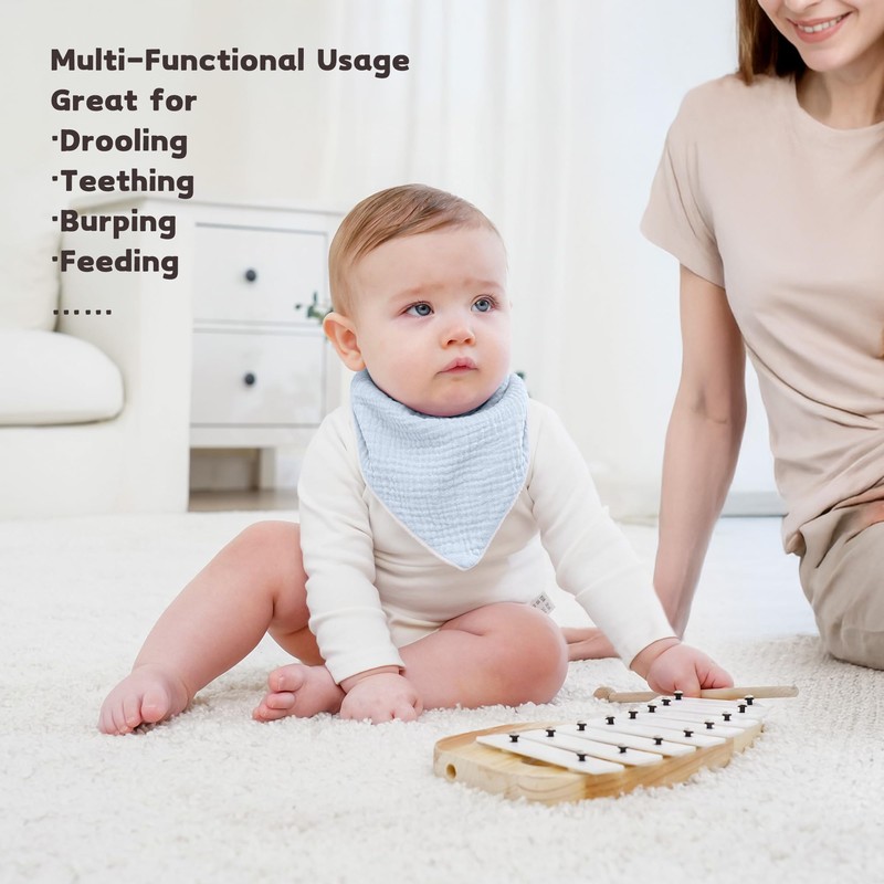 - Versatile Usage: Our bandana bibs are not only perfect for drooling but also for feeding, burping, handling spills, and messes. They can even double as a handkerchief on the go. Lightweight and plush, they boast an ultra-soft texture and are suitable for all skin types, including sensitive ones.