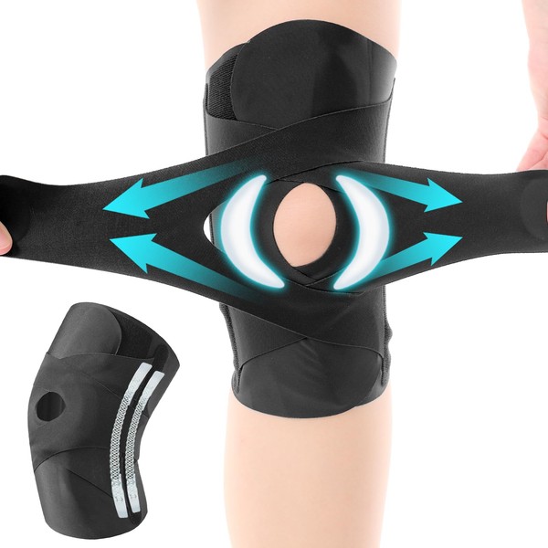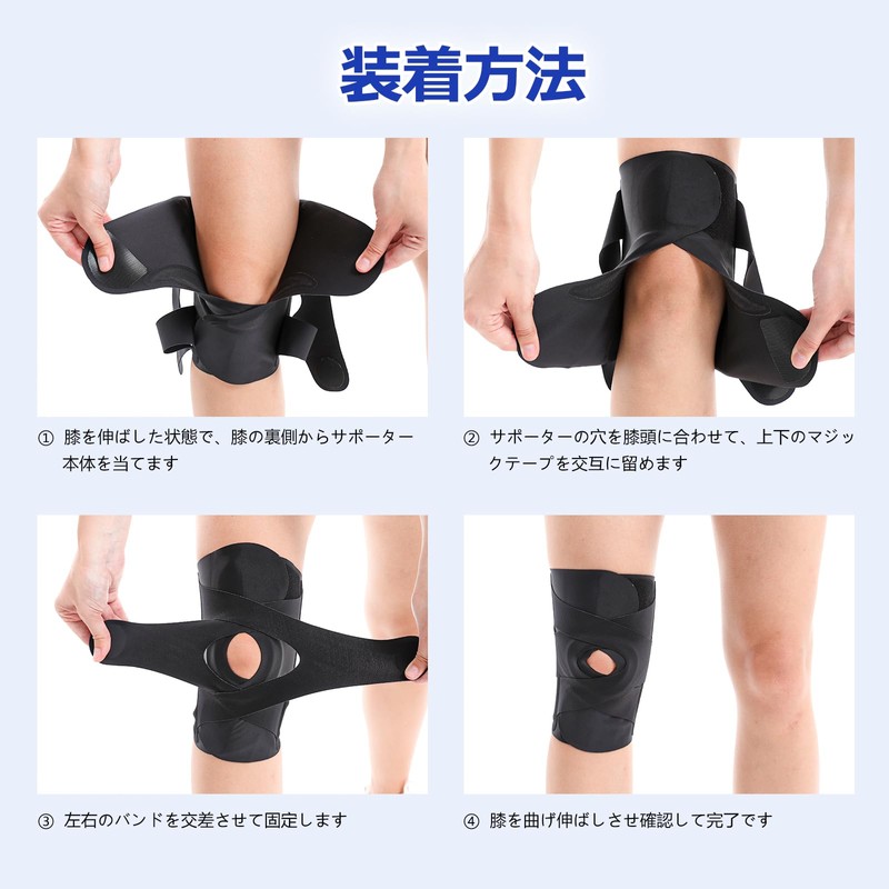 - 【360°全面保護】この膝サポーターはオープン膝蓋骨とバックデザインは、膝蓋骨への圧力と汗の蓄積を避けることができます。膝に巻くV型マジックテープを2本追加し、膝の上下に交差して、膝蓋骨のカーブに360°完全にフィットし、損傷の回復とスポーツによる怪我に。選択に応じて気密性を調整し、膝の圧力を修正し、傷ついた筋肉、靭帯、腱にテーピングやサポーターを用いることで、それはモビリティを犠牲にすることなく、潜在的な傷害から膝を保護します!