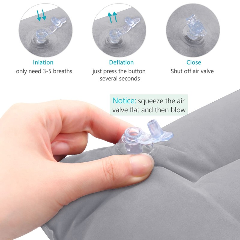 - PORTABLE The inflatable pillow fits in jacket or backpack bags and is ideal for travel, camping, hiking, beach vacation, etc