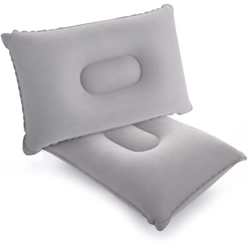 SUTAFOR Inflatable Cushion Pack of 2 Camping Pillows Travel Cushion Flocking Seat Cushion for Beach Outdoor Hiking Grey 42 x 29 cm