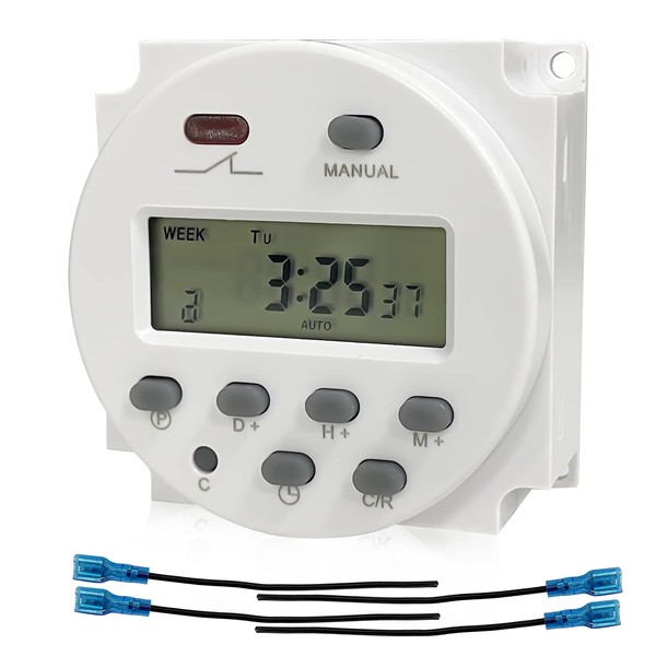- Sutekus Timer can repeat programs with 16 ON/OFF setting and manual override, 1 minute to 7 days timing range, support advanced pre-setting one week before.