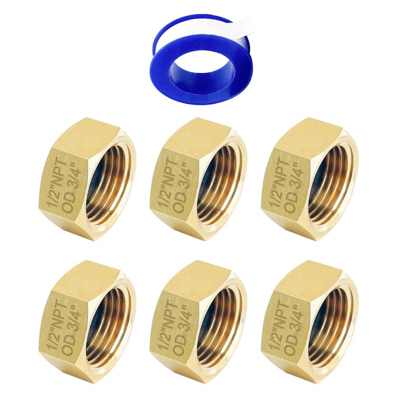 Sutekus Pipe Fitting Cap NPT Female Pipe Brass Fitting Hex End Cap Stop Valve Connector with Extra Rubber Gasket (1/2"NPT[OD3/4"]-6PC)