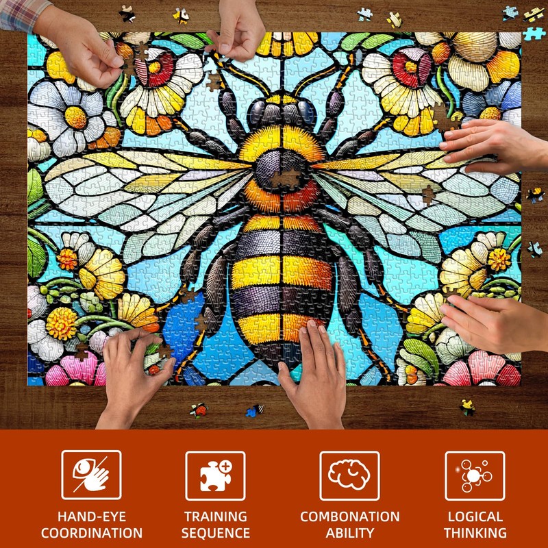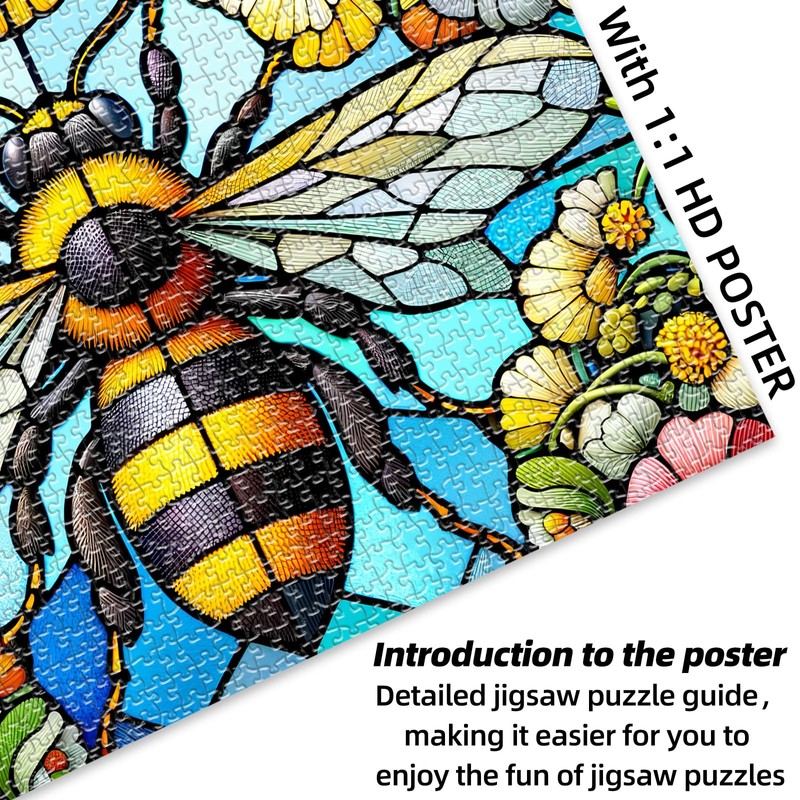 - Vivid Artwork : 27.5"X19.7", 1000 piece adult puzzle features stunning stained glass-style artwork of a vibrant bee surrounded by colorful flowers, providing a delightful visual experience during assembly