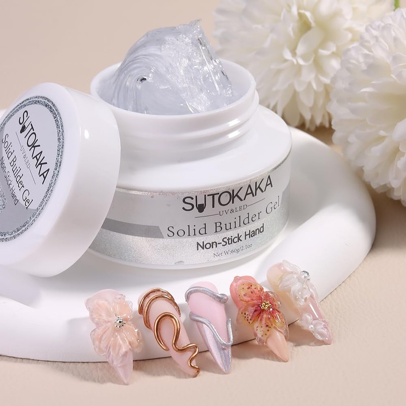 SUTOKAKA Solid Builder Gel for Nails, 60g Large Capacity Clear Hard Gel Non-Sticky Hand 3D Sculpting Gel Carving Gel Nail Extension Gel for Manicure Salon UV Home DIY