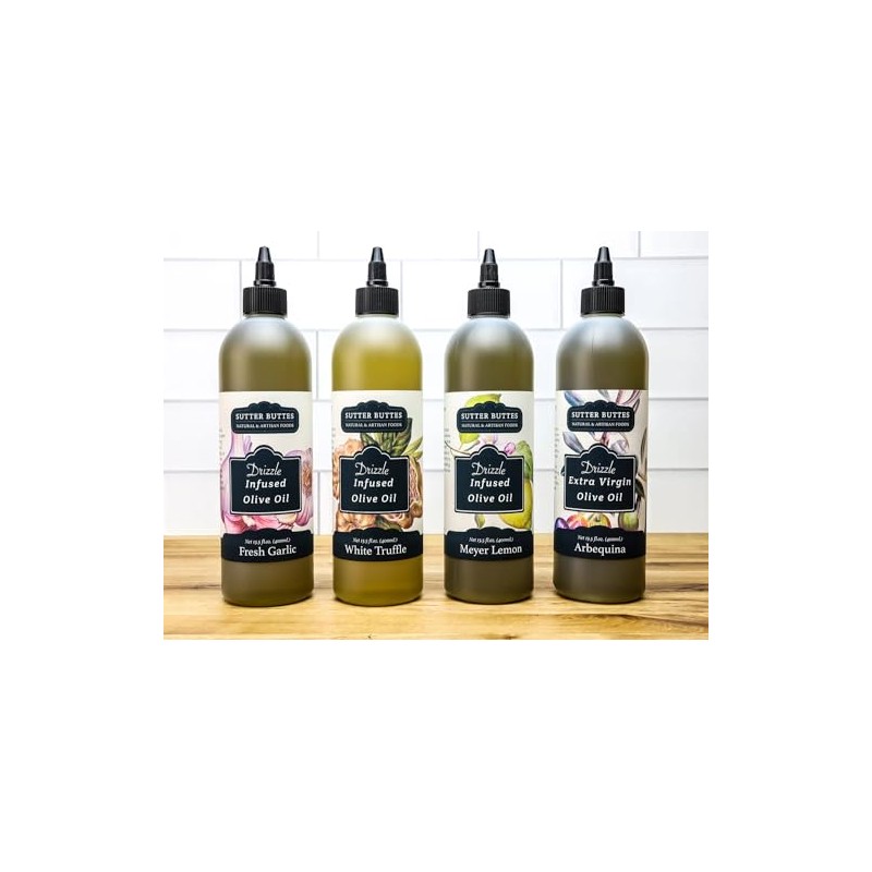 Sutter Buttes Arbequina Extra Virgin Olive Oil Drizzlers in Award-Winning Flavors! - 400 ml (Arbequina)