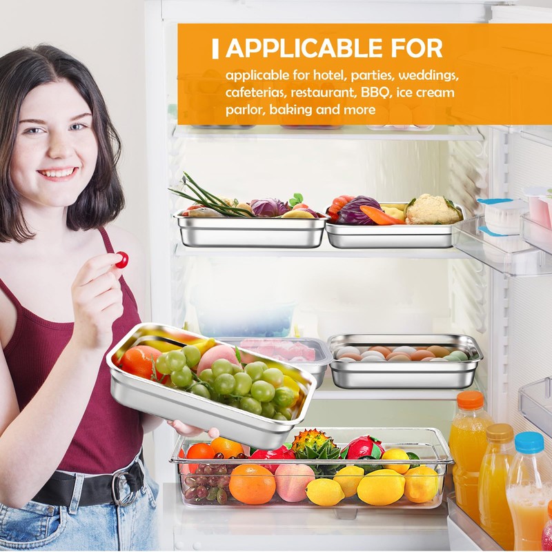 - Sufficient Restaurant Supplies Stainless Steam Table Pans: you will get 8 packs of our quality steam table pans; Each piece incorporates the blend of material, size, function, and application features, meant to cover most of your cooking and serving needs; With this sufficient pack, you'll have the necessary tools to prepare, store, and serve your culinary creations with style and ease