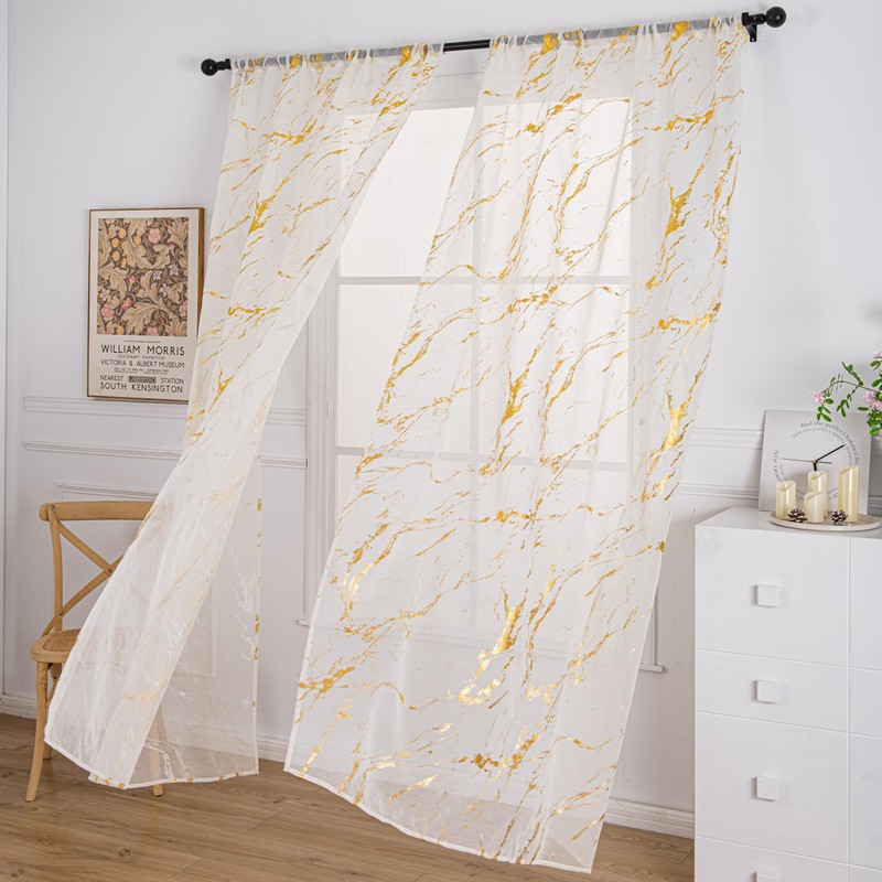 - 【Gold Foil Print】These fancy sheer curtains designed with bronzing foil printed marble pattern which brings modern and fashionable feelings to your room.