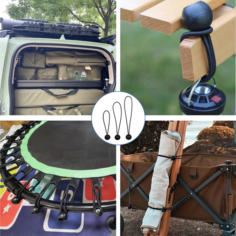 • Wide range of uses: these rubber bands with balls in different lengths are long enough to meet your daily bundling needs and are indispensable tools. Whether tent, tarpaulin, banner, mosquito net, gazebo canopy, banner or others, with these bungee bands you are well equipped
