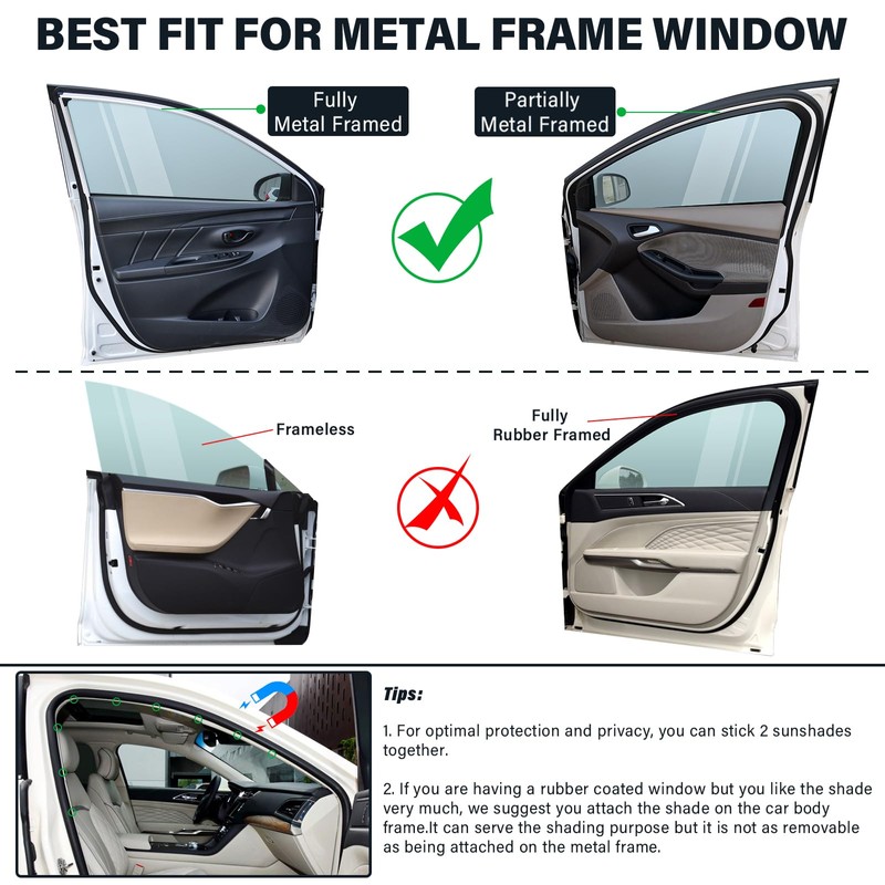 • READ BEFORE PURCHASE-Designed for STEEL or METAL framed window. Not compatible with frameless window like Tesla,nor rubber or alumnium framed window.