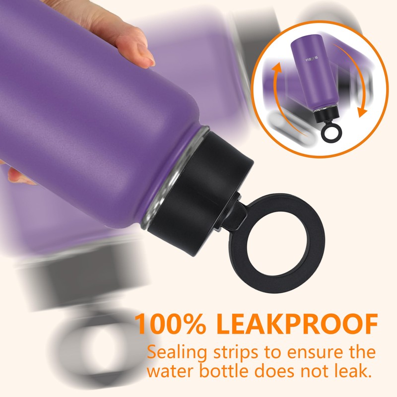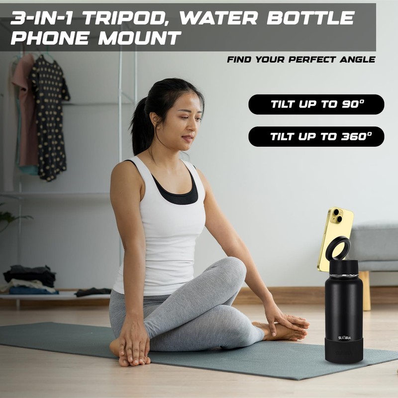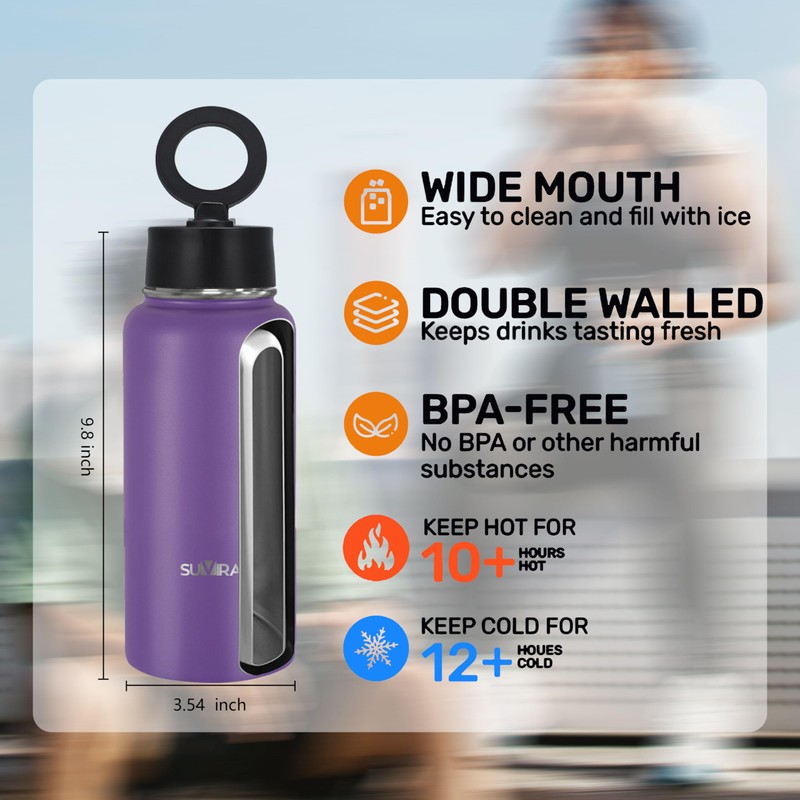 Suvira Stainless Steel Insulated Water Bottle & Magnetic Lid-Compatible with MagSafe,Tripod Phone Mount,&Phone Holder Travel Thermos, Sport,Yoga, Gym Keeps Hot for12 H,Cold 24H (Purple, 32 Ounces)