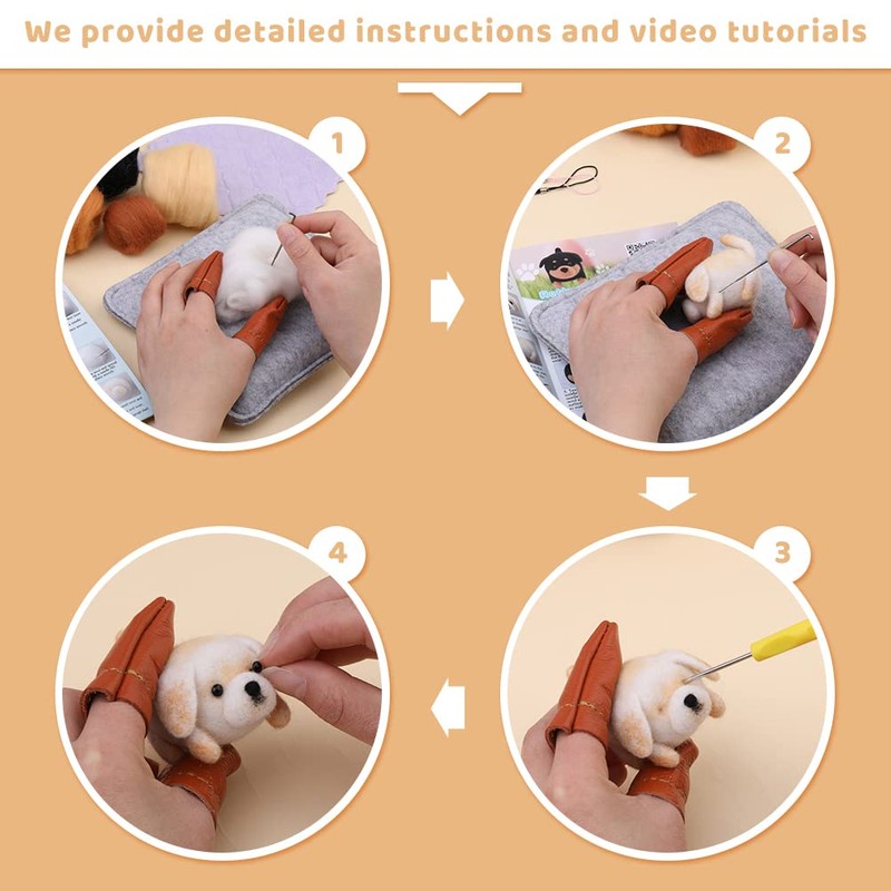 - Needle Felt Starter Kit: Our needle felt set provides you with a material pack that can be made into 6 dogs, each dog comes with detailed instructions that teach you step by step how to create each character, simple and easy to understand. You don't have to worry about doing it badly. Great for beginners and DIYers.