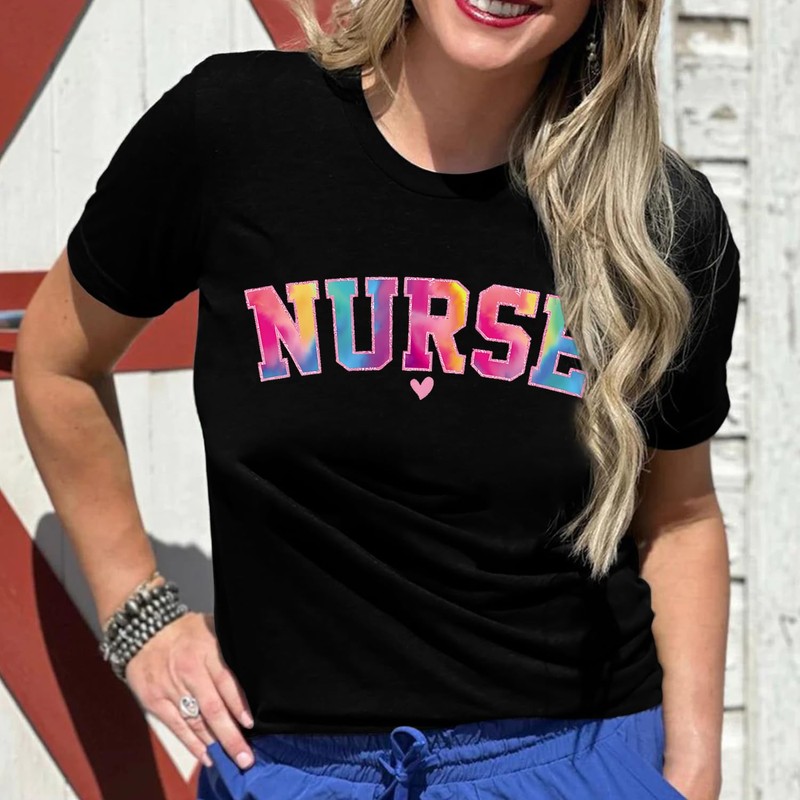 Show your recognition and appreciation for nurses by wearing our women's nurse shirt with a nurse logo! This comfortable women's nurse shirt features letters plus print design and is perfect for everyday wear.