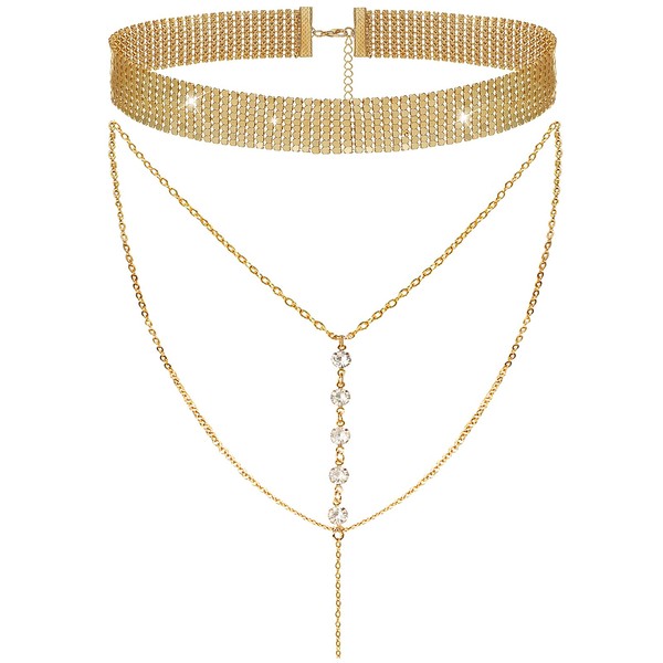 Suyi Gold Necklace for Women Long Crystal Y Neckalce Layered Chock Necklace Gold 2