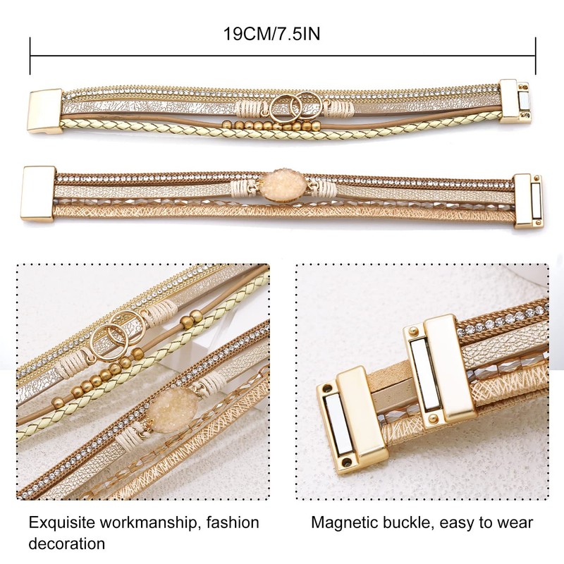 The beauty of this multilayer leather suit bracelets are that it's easy to wear because it uses a magnetic clasp.