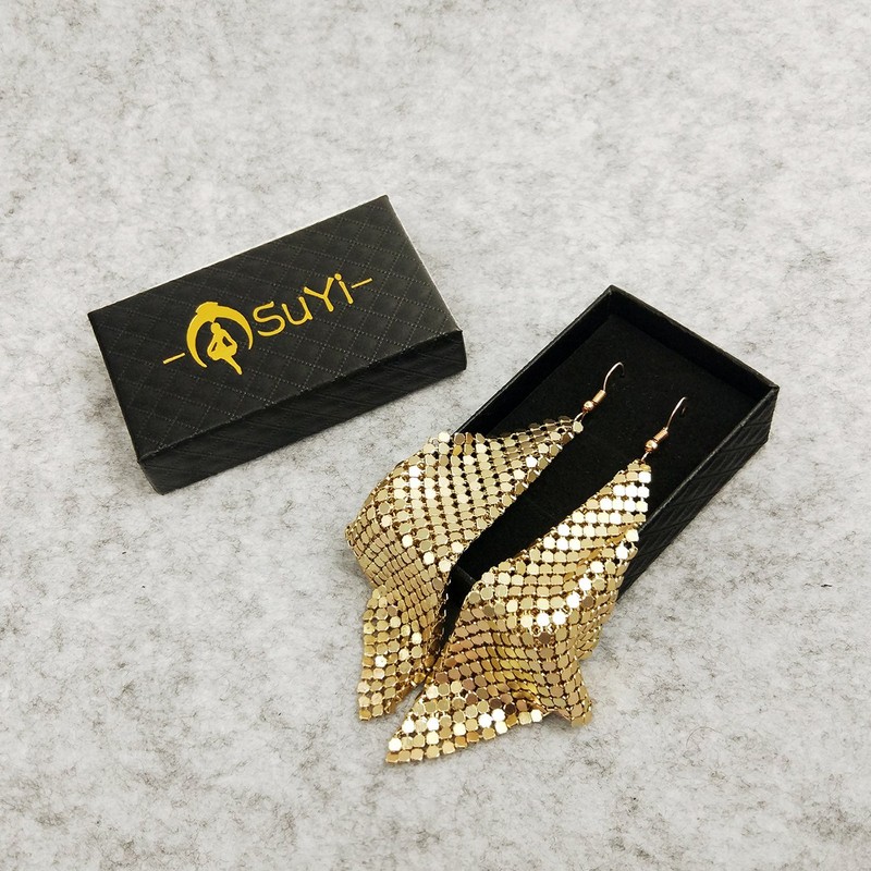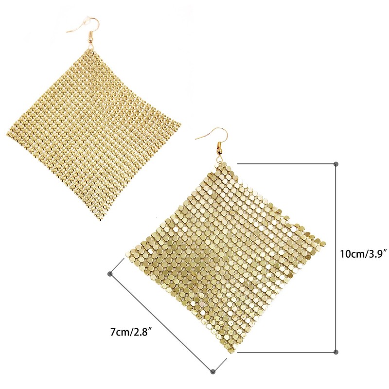 Suyi Trendy Women Earrings Metal Mesh Grid Sequins Tassel Long Drop Dangle Earrings Gold