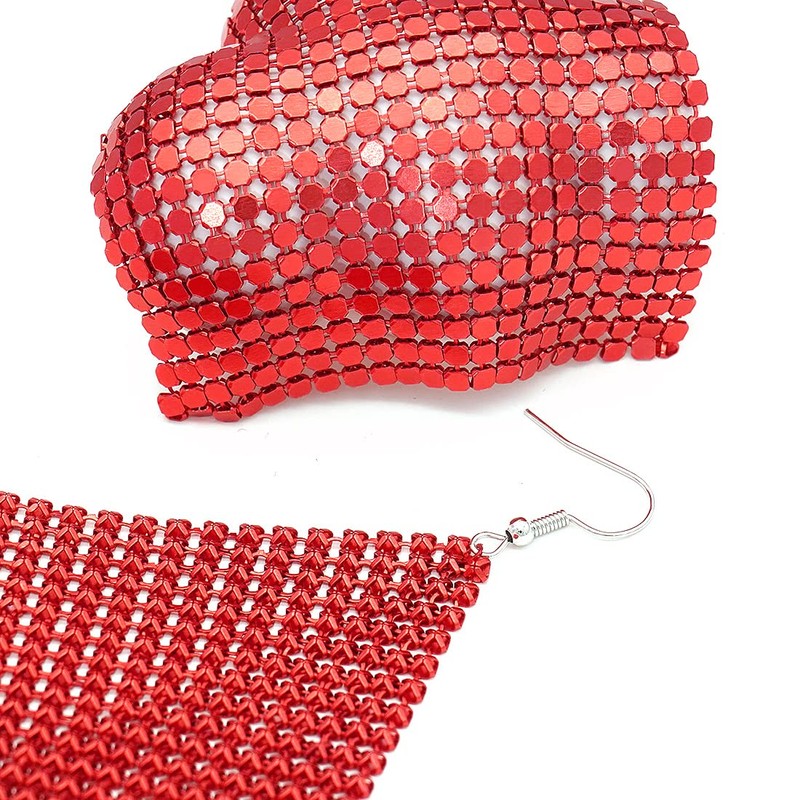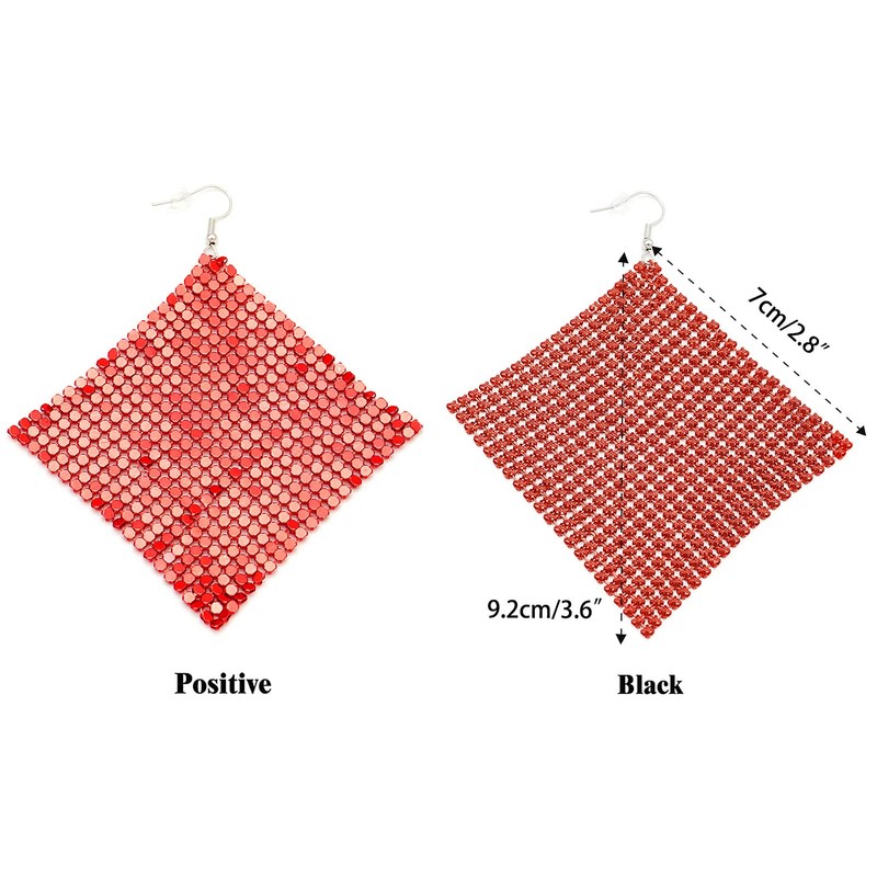 Suyi Trendy Women Earrings Metal Mesh Grid Sequins Tassel Long Drop Dangle Earrings Red