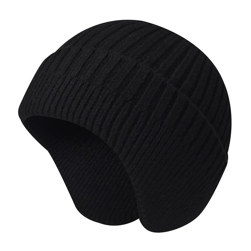 SUZALA Winter Hat with Ear Flaps, Breathable Knitted Beanie Hat for Men and Women, Head Warmer Beanies Outdoor Activities, Earflap-Black