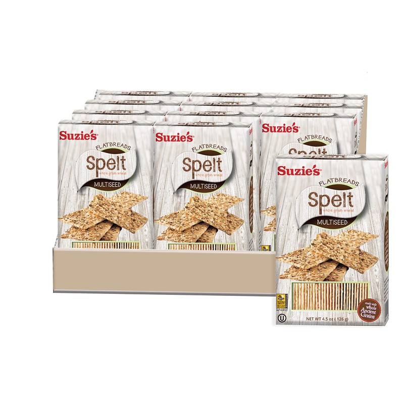 Suzie's, Spelt Multi-seed Flatbreads (Pack of 12) | Low-Fat Bread Cracker | Healthy Snack Option | 4.5 oz each
