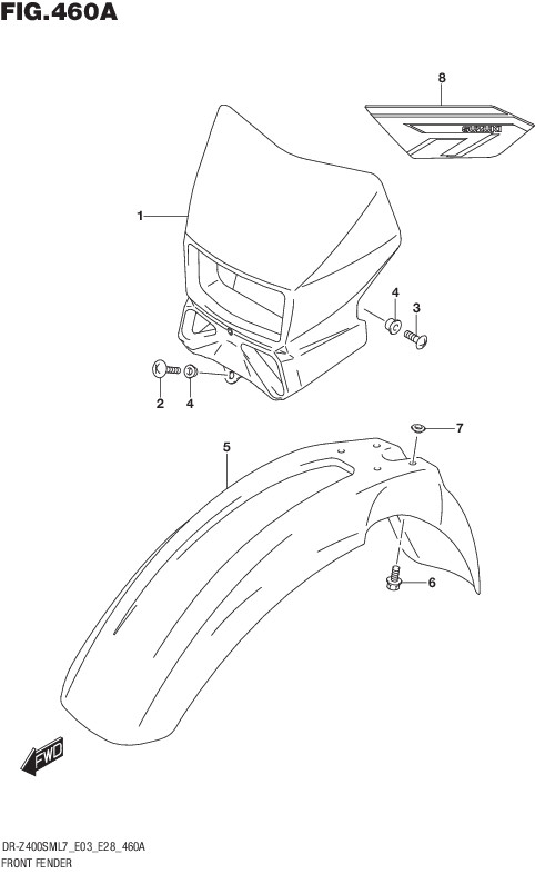 | 2012 | Suzuki | DRZ400S | FRONT FENDER | COVER, HEADLAMP (WHITE) | |