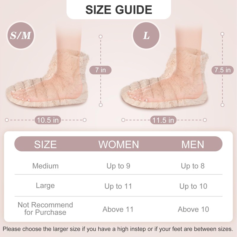 - A Lifesaver for Cold Feet and Hands: We all know it's difficult to sleep with chilly feet and hands, so microwave booties and heated gloves have been designed to solve this problem. Heat them in the microwave for 60 seconds and you've got yourself 20 mins of cozy warmth! Heating slippers and gloves can accelerate blood circulation through the moist heat, achieving the effect of warming the feet/hands and relaxing the muscles. Good choice in the evening to take the bone-deep chill away!