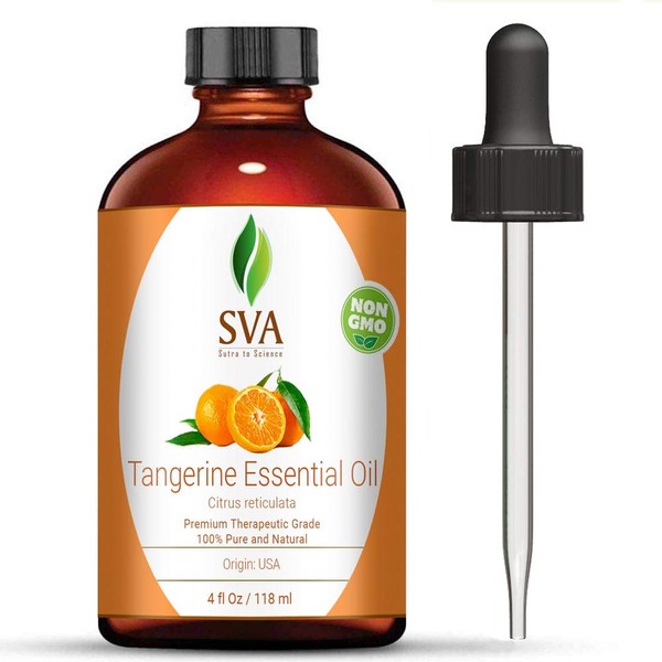 SVA Organics Tangerine Essential Oil 4 Oz 100% Pure Natural Therapeutic Grade Undiluted Steam Distilled Oil with Dropper