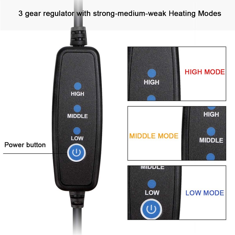 - Temperature setting; strong medium low 3-speed heating modes that allow you to adjust the temperature to your needs