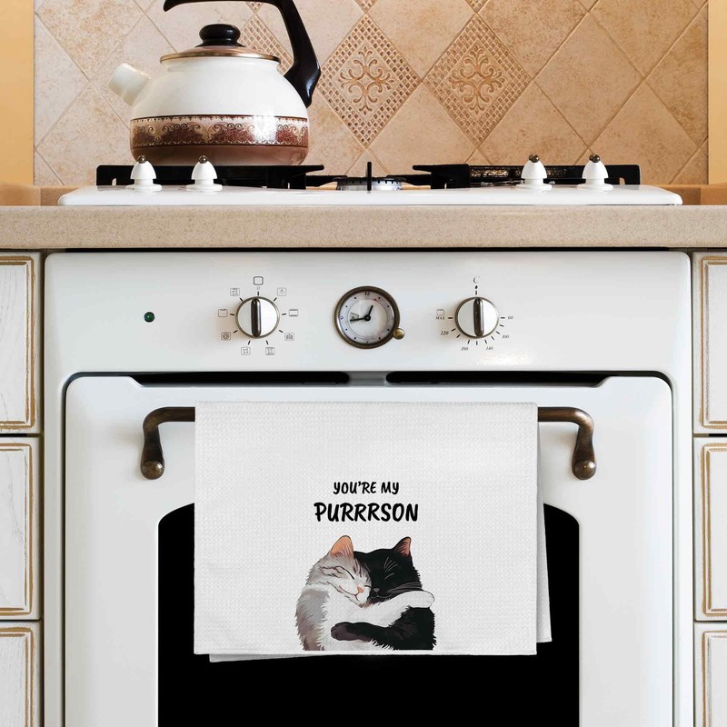 Sviojuce Funny Valentine Cats Gifts Kitchen Towels Decorative 16x24, Valentine Black Cat Dish Towel Cloths Dishcloths Tea Towel for Cat Lovers, You're My Purrrson Bathroom Hand Towel Decor