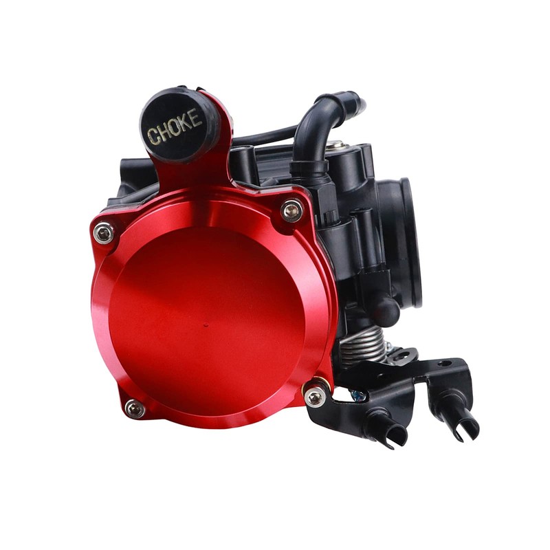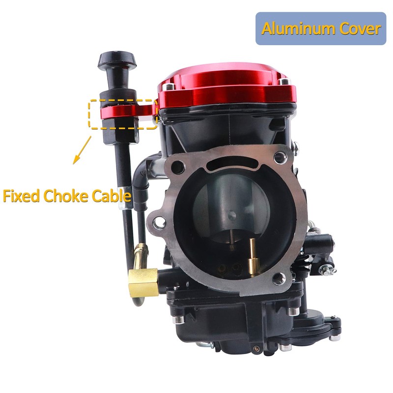 - This CV 40mm carburetor has a red aluminum cover that can fix the choke cable.