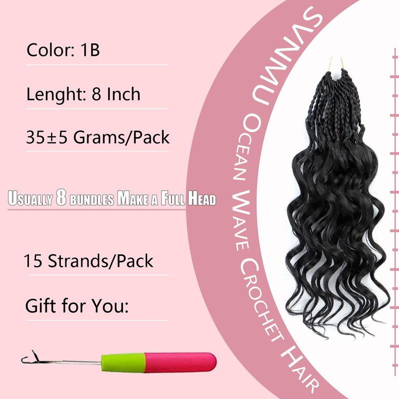 - 4️⃣ VERSATILE STYLING: 8inch natural black ocean wave boho box braids, 8packs (120 strands in total) for full-coverage hairstyles.Come with a crochet hook.