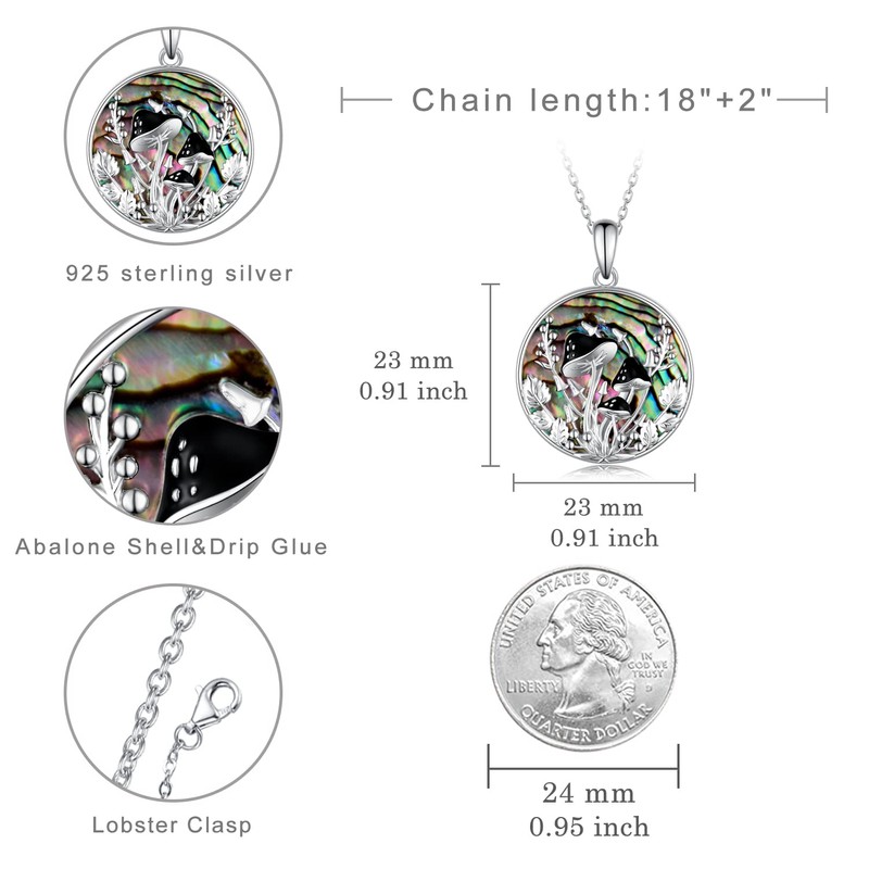 - NECKLACE PARAMETERS-- Pendant Size: 23*23mm(0.91*0.91 inches). Total silver weight: 4.91g. Gem: Abalone Shell. The Rolo Chain of Mushroom Necklace Length (With Lobster Clasp) : 18+2 inches adjustable.