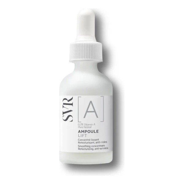Ampoule Lift [A] de SVR: Con retinol puro y encapsulado, actúa sobre las arrugas, reafirma la piel y mejora su textura de manera avanzada.