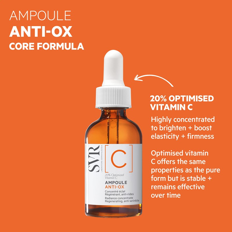 SVR [C] Ampoule Anti-Ox Revitalising Radiance + Anti-Wrinkle Face Serum. 20% Vitamin C Revitalises + Brightens, Combatting Fine Lines, Dull, Tired Skin + Uneven Skin-tone, 30ml