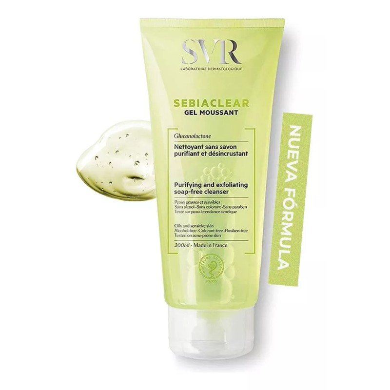 EL GEL MOUSSANT SEBIACLEAR, es un limpiador sin jabón que purifica y desincrusta suavemente la piel. Su espuma cremosa ayuda a eliminar las impurezas y deshacerse del exceso de sebo sin resecar. Fácil de aclarar, deja la piel perfectamente limpia, fresca y matificada.