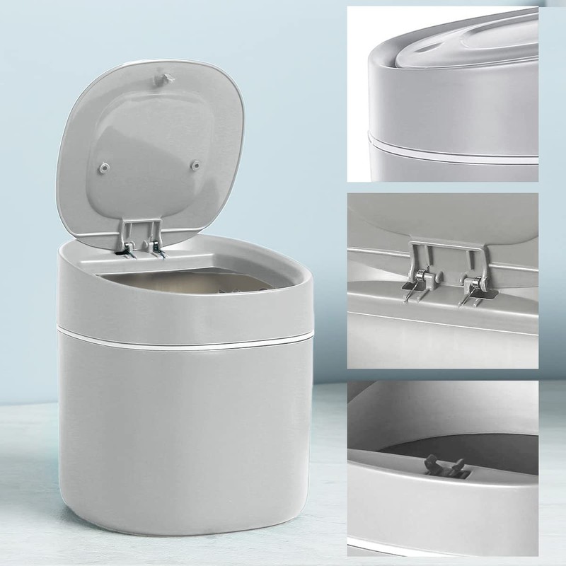 SVUPUE Mini Trash Can, Mini Desktop Trash Can, Desk Trash Can with Lid, for Bathroom, Kitchen, Office, Coffee Table, Portable Lid Removable, Grey