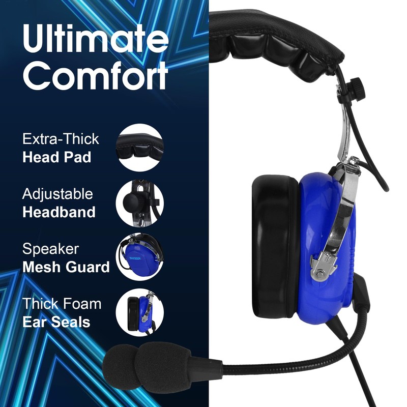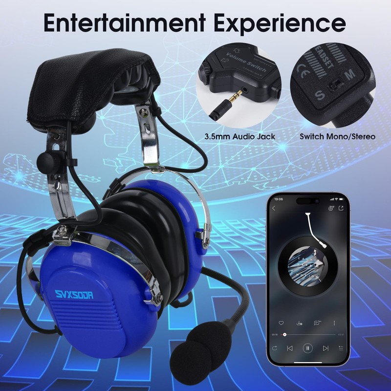 SVXSODA Stereo Mono Audio,GA Headphone Twin Plugs,24 db PNR Noise Reduction Aviation Headset with Mic,for PPL Student Pilots Flight Passengers Ground Crew Technican(629-B) (Blue)
