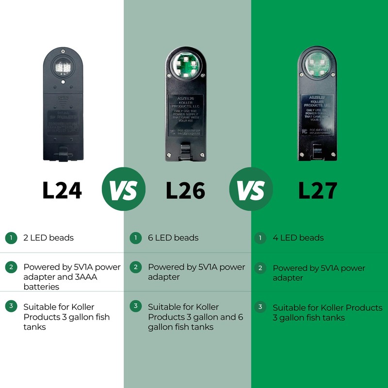- Replacement L26 LED light suitable for Koller Products 3 gallon and 6 gallon fish tanks