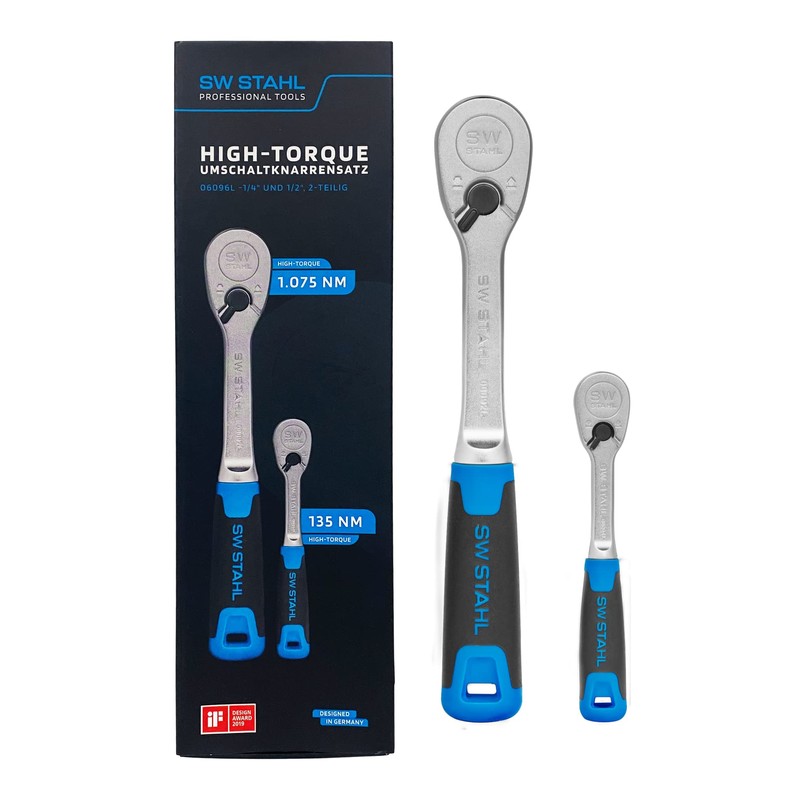 SW-Stahl 06096L Reversible Ratchet Set 2-Piece I 1/4 and 1/2 Inch Ratchet up to 1,075 Nm I High Torque Ratchet Set I Fine-Toothed with 90 Teeth