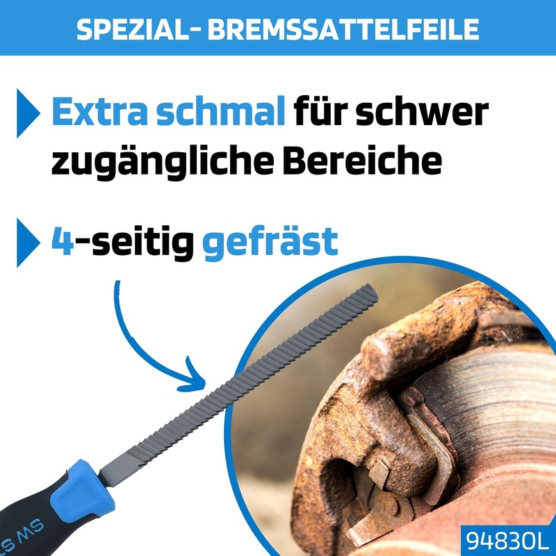 - Robust 4-sided milled brake file for cleaning brake calliper and caliper guide.