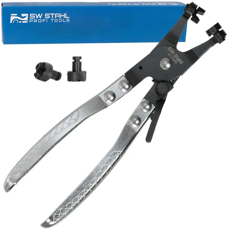 - The unique rotating receptacle of the spring band clamp pliers allows flexible adjustment to different working angles, making working in hard-to-reach areas easier.