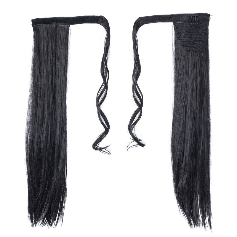 SWACC Women Long Straight/Curly Wavy Wrap Around Ponytail Extension Synthetic Hair Piece Clip in Hair extensions (Straight, 1B#-Off Black)