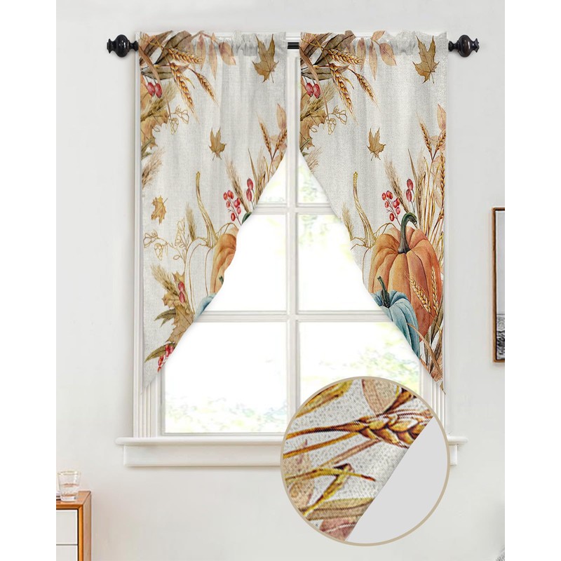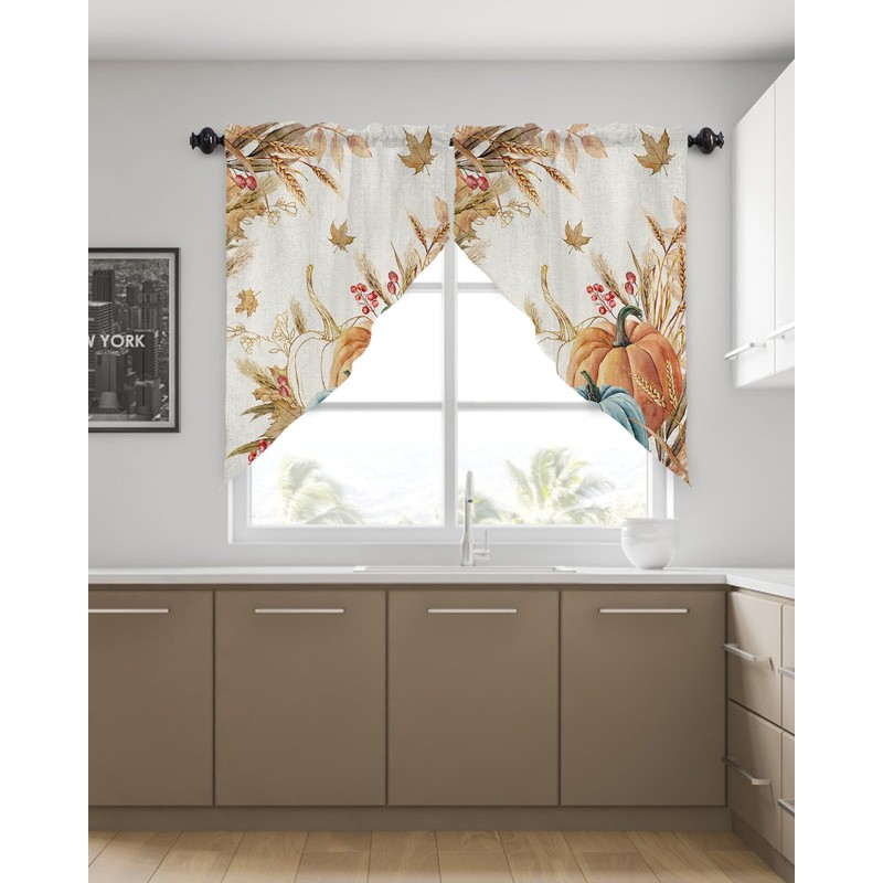 Swag Curtain,Fall Thanksgiving Watercolor Pumpkin Kitchen Valances Rod Pocket Curtains Tier Pair Swag Topper,Farm Leaves Wheat Linen 2 Panels Window Treatment for Bathroom Living Room Bedroom