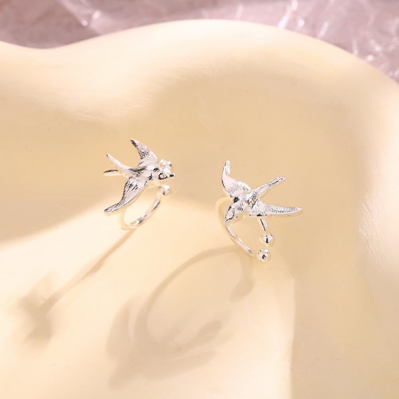 - 【Size & Details】Cute swallow bird size 12*14mm, adjustable ear cuff. Perfect size to match your perfect ear. Lightweight build defends against any discomfort, it’s also suitable for sensitive people.