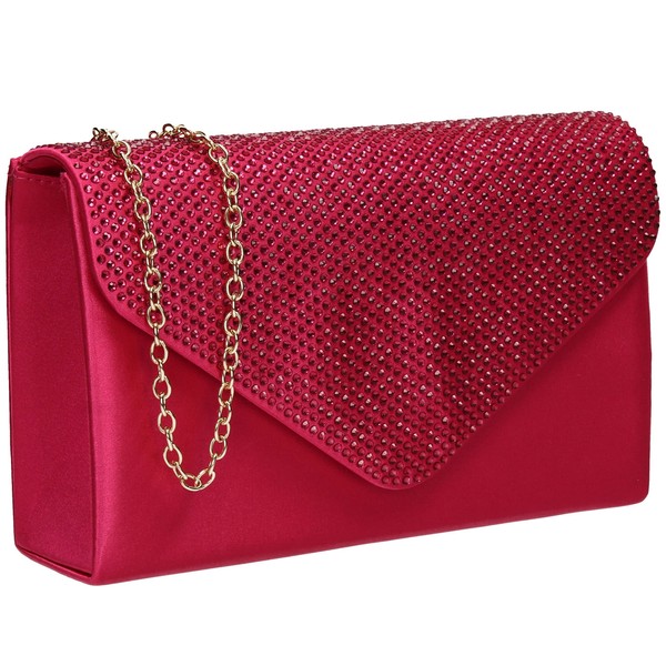 SwankySwans Jodie Women's Satin Diamond Party Prom Wedding Evening Clutch Bag, fuchsia